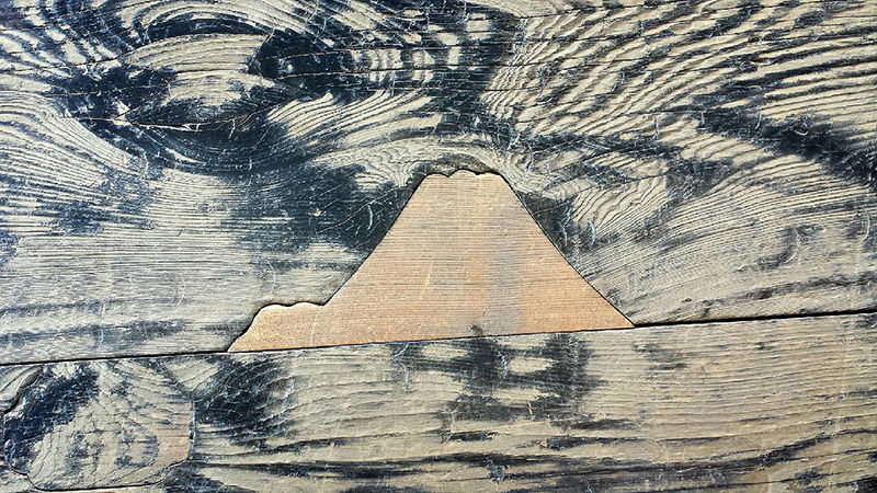 look at “umeki” at Nishihonganji Temple. It is the repairing method to reinforce rift and crack of wood by filling in chips of wood. You can find many umeki on the corridor of the Amitabha Hall.